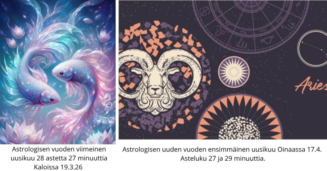 Kuuilta ma 13.4.2026 klo 17.30 -20 Brahenkatu 18 b A19 Illan vetää Pirjo Kahlos. Aiheena tarkastellaan mennyttä Kalojen uuttakuuta sekä tulevaa Oinaan uuttakuuta sekä verrataan näitä karttoja paikalla olevien transiittikarttoihin.Voidaan pohtia myös Oinaan merkin merkitystä siinä valossa miten Aurinko sen nyt jokaiselle tuo tietoisuuteen. Mikä elämänalue on nyt tarkastelun alla?Huhtikuussa mikään planeetta ei peräänny, joten senkin osalta on meillä uusien alkujen ja eteenpäin menemisen aika luvassa. Ilmoita tulostasi info@turkuastro.fi tai jos kuulut WA-ryhmään Kuuilta Tursas. Ovikoodi tallessa? Hinta 12 € jäsen, 18 € ei jäsen. Turun Seudun Astrologinen Seura ry FI51 4309 0010 0431 80, viitenumero 202617.